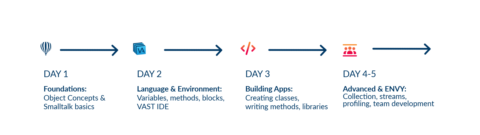 The Intro to VAST Training Program is designed to be accessible for developers with a range of backgrounds. While no prior Smalltalk experience is required, participants should have some real-world programming experience. Even though it isn’t required, familiarity with object-oriented programming will make it easier for participants to engage with the training.