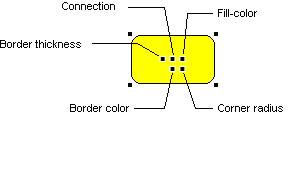 Handles are typically drawn as little black boxes in an appropriate location. When you select a handle, the graphic object takes some appropriate action, such as allowing you to move a corner when you select a corner handle. Handles can do pretty much anything you want. For example, the default handles on the GFRoundedRectangleGO look like this: