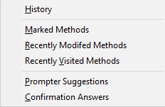 Clear the history list, any of the special method lists, the prompter suggestion lists or the confirmation dialog answers (e.g., “don’t ask me again”).
