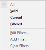 Indicates which required map lineups should be updated when config map changes are being propagated. If set to “All”, all lineups will be update. If set to “Valid”, only currently valid lineups will be updated. If set to “Current”, all lineups that are currently up to date will be updated. If set to “Filtered”, only lineups not matching any expressions in the filter list will be updated. Additional options are also presented to allow the use to edit the current filter list, add a filer or clear all of the filters.
