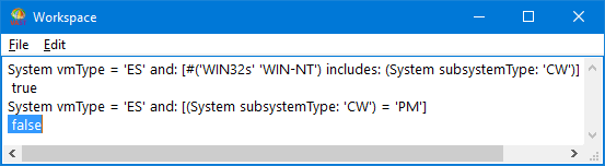 System vmType = 'ES' and: #('WIN32s' 'WIN-NT')